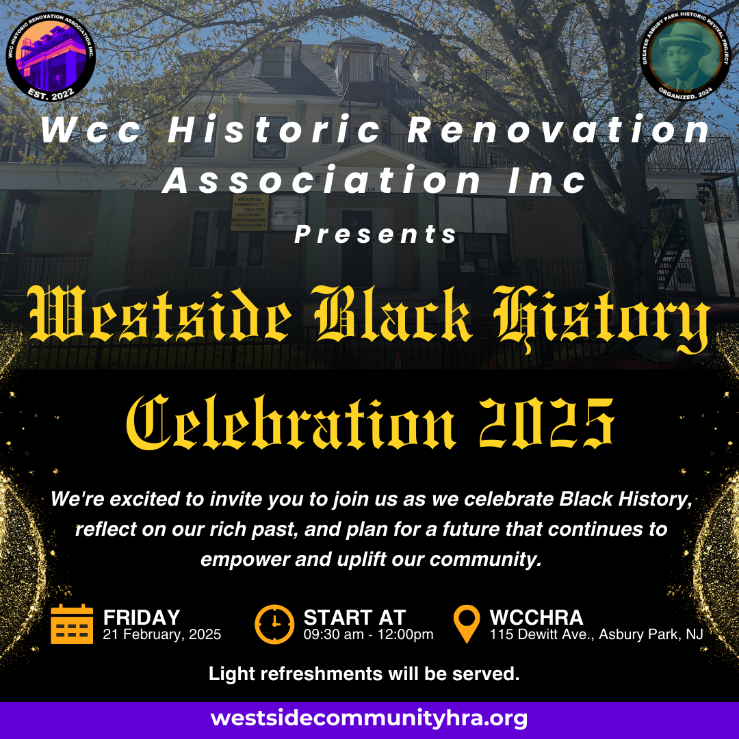 ASBURY PARK — The Westside Community Center Renovation Association will host the Westside Black History Celebration 2025 on Feb. 21, and the nonprofit plans to sign multiple agreements that will bring trade classes and community outreach offices to the historic center with hopes to reopen to the public later this year.